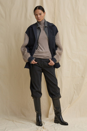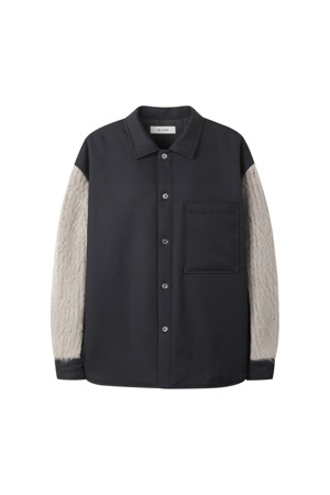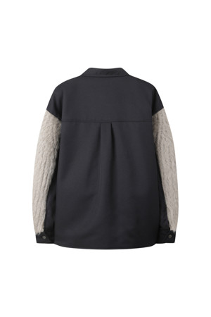 모헤어 터틀넥 니트의 소매를 덧대어 제작한 셔츠형 아우터입니다.