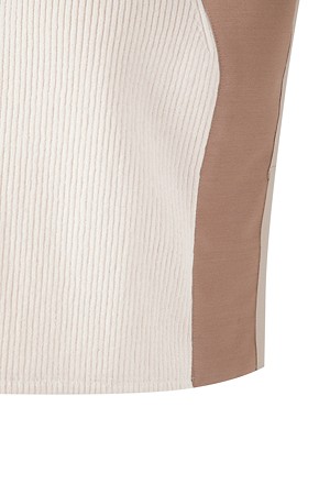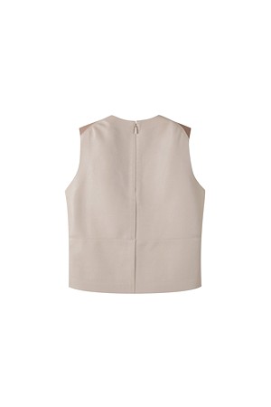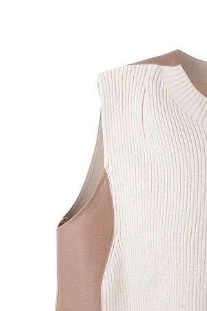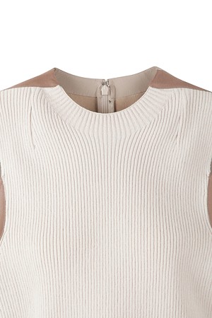 양가죽으로 제작된 조끼에 면혼방 니트를 합쳐서 제작한 레더 탑입니다.