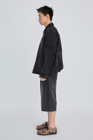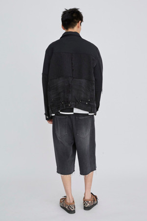 재고로 남은 데님 팬츠를 활용해 재탄생한 자켓입니다.