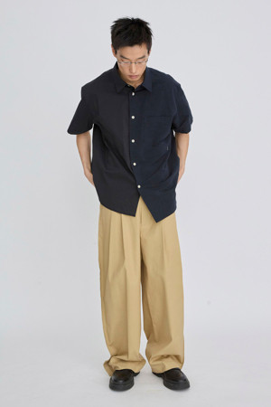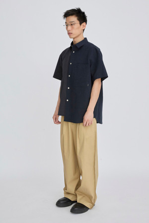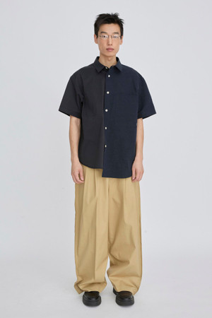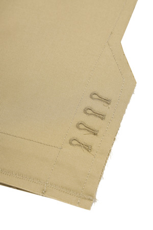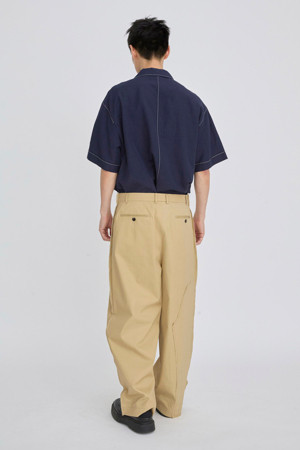 밑단에 셔츠 소매 형태의 패치워크 디테일이 추가된 팬츠입니다.