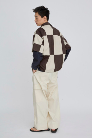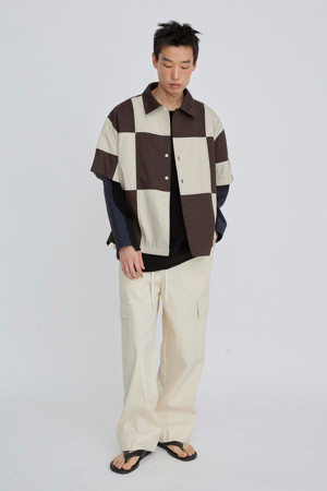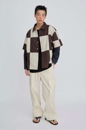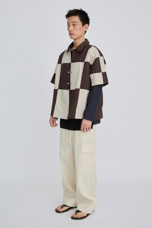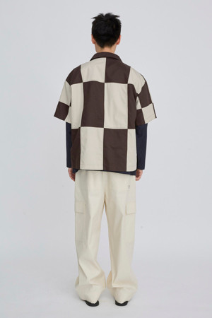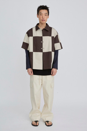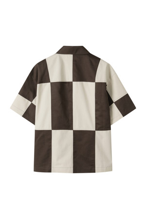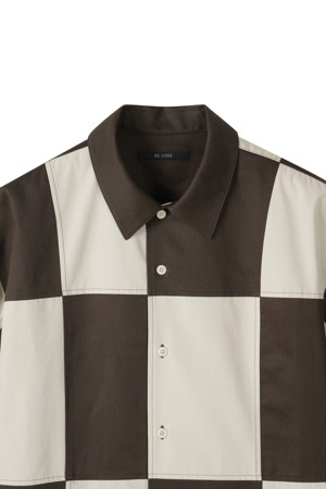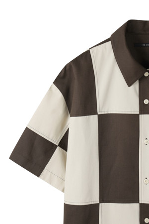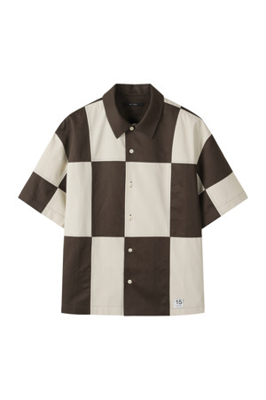 체커보드 패턴이 매력적인 반팔 셔츠입니다.