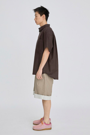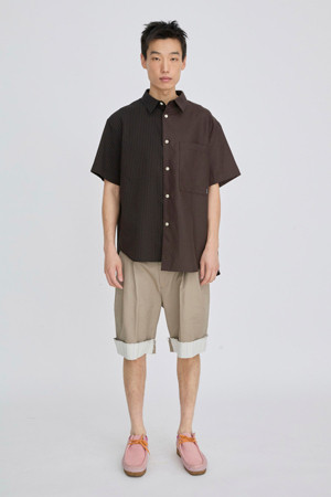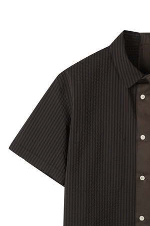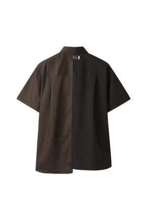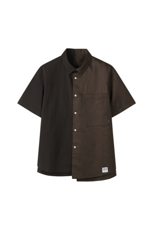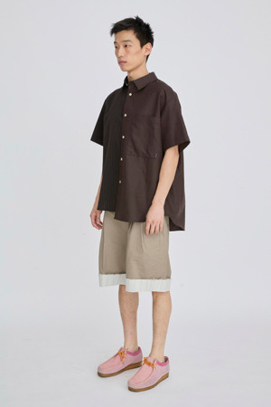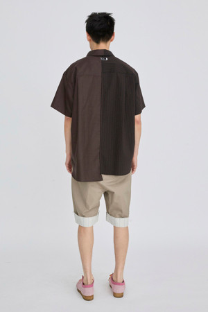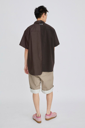 서로 다른 소재의 셔츠가 결합된 반팔 셔츠입니다.