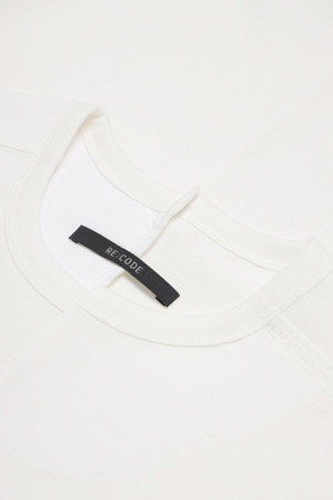 래코드의 아카이브 디자인으로 반반씩 언발란스하게 합쳐진 티셔츠입니다.