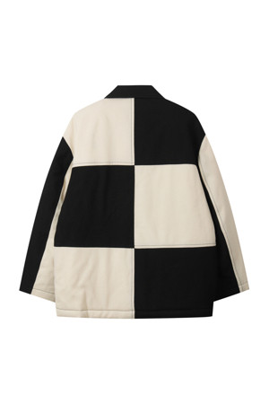 체커보드 패턴에 원단 셀비지 라인을 디자인 요소로 더했습니다.