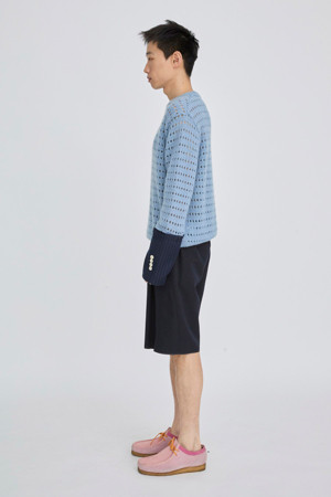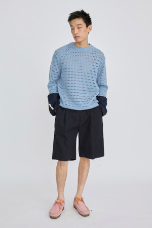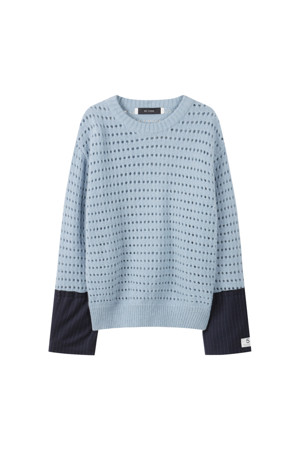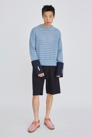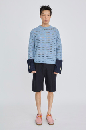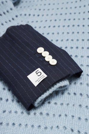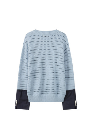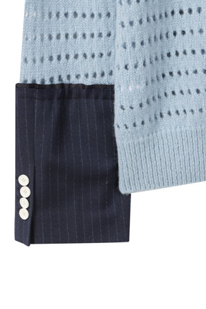 - 니트의 소매 부분에 정장 재고를 덧대어서