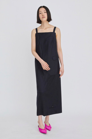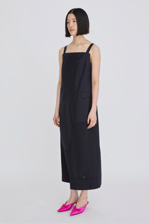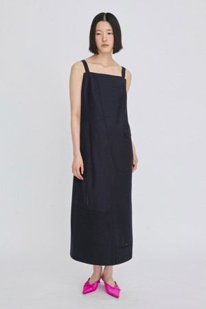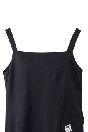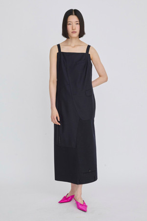 테일러드 자켓과 팬츠를 해체하고 재결합한 유니크한 디자인의 H라인 드레스입니다.