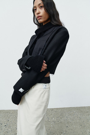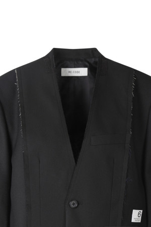 재고 남성 자켓을 활용해 새롭게 재해석한 노카라 크롭 자켓입니다.