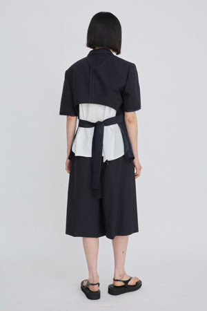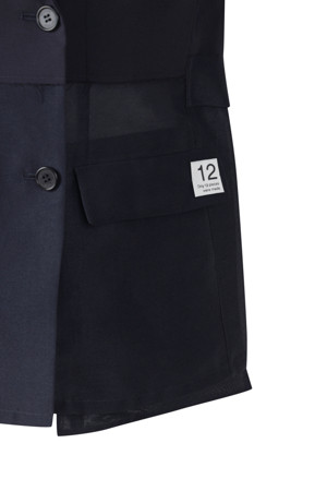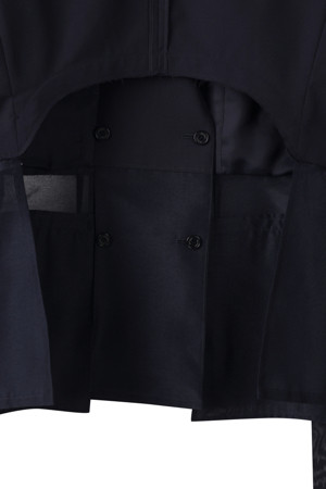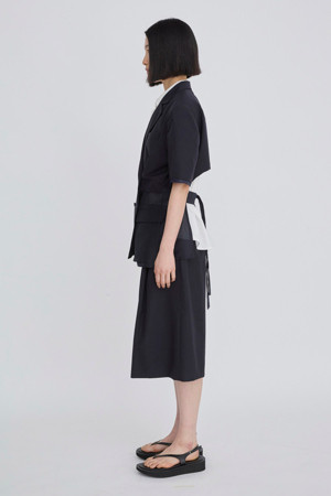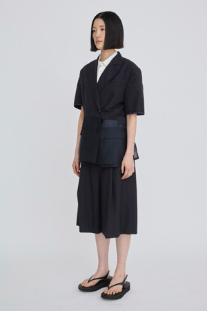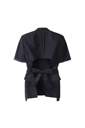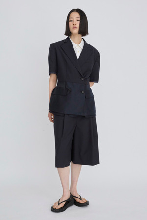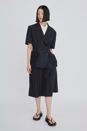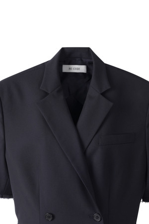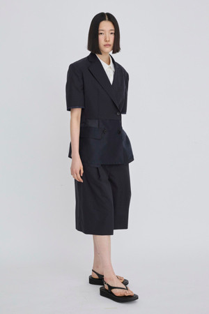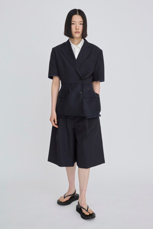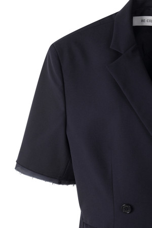 앞뒤의 기장 차이를 둔 경쾌한 실루엣의 여름용 반팔 재킷입니다.