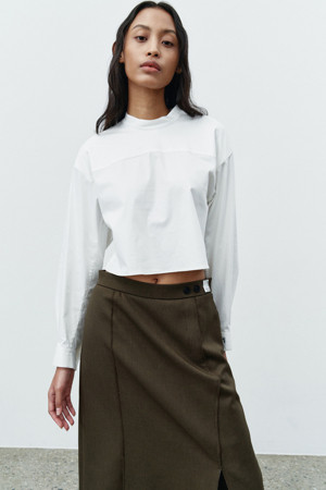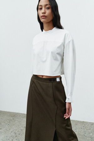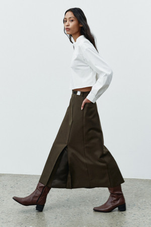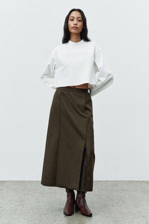 핏 : 미디 기장의 플리츠 실루엣으로 안정감 있는 핏을 연출합니다.