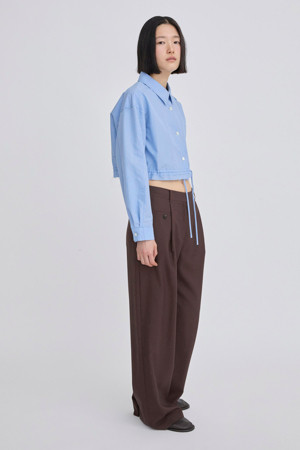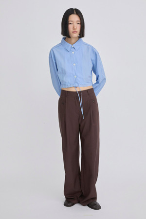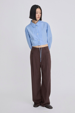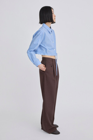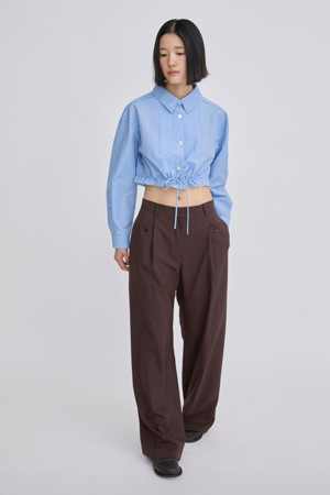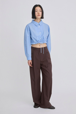 허리선의 스트링으로 전체적인 볼륨 조절이 가능한 크롭 블라우스입니다.