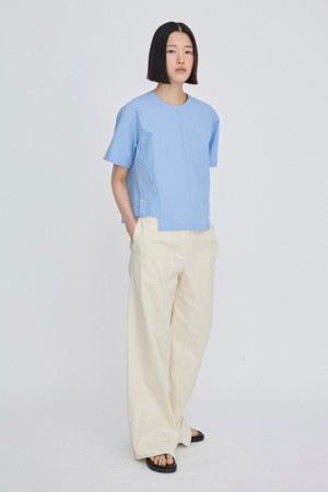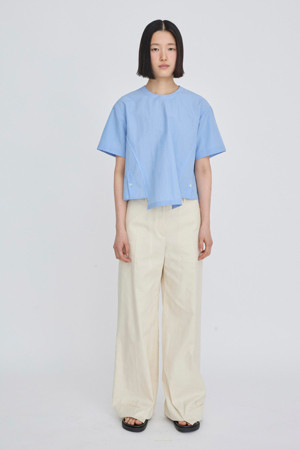 - 뒷판은 셔츠 테일이 시원하게 떨어지는 디자인으로 독특한 실루엣을 완성하며,