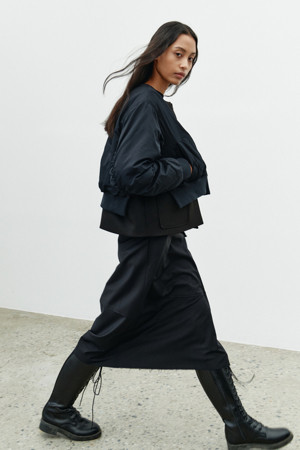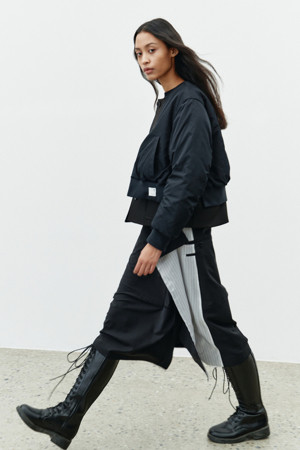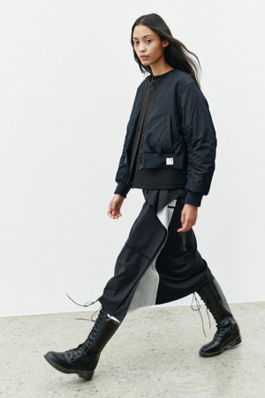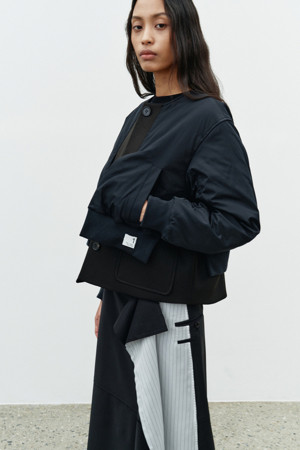 해체된 항공점퍼와 자켓을 레이어드 기법으로 재조합한