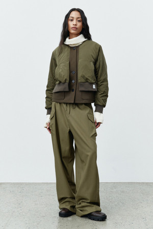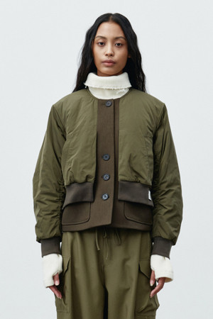 해체된 항공점퍼와 자켓을 레이어드 기법으로 재조합한