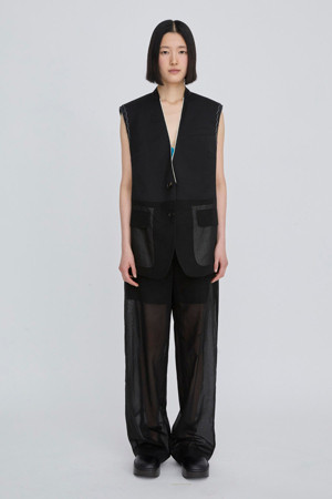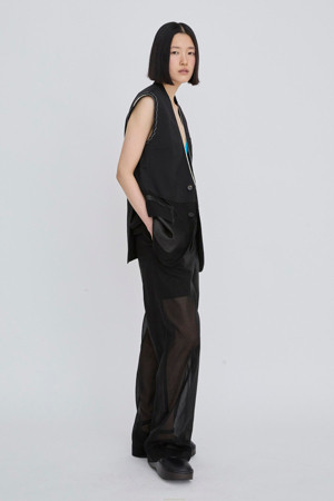 - 하단에 비치는 원단을 믹스해 자연스럽게 안감을 노출시켜 디테일을 더했습니다.