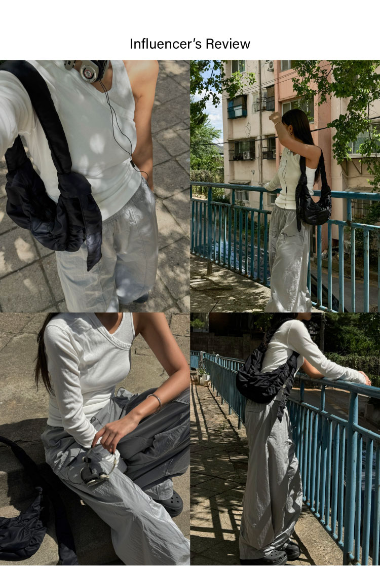 - 구겨진 반달벌룬형태의 스타일리쉬한 미니사이즈 가방.