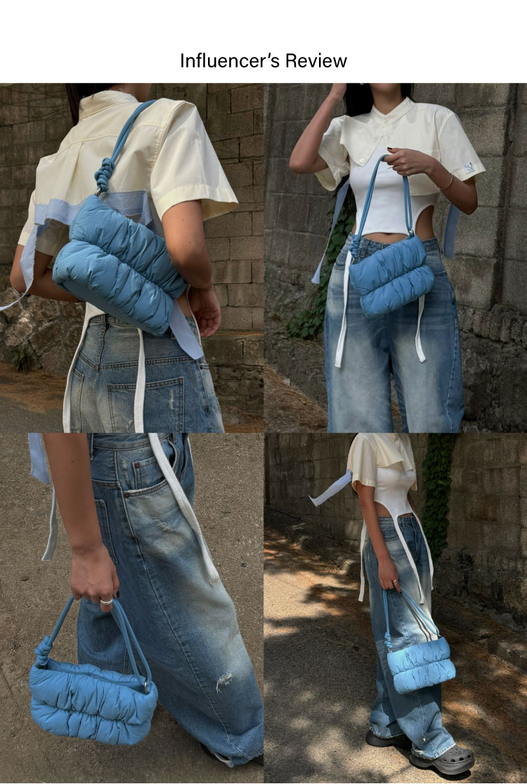 - 자석 여닫음 디테일로 가볍게 들수 있으며, 끈 매듭으로 길이 조절 또한 가능.
