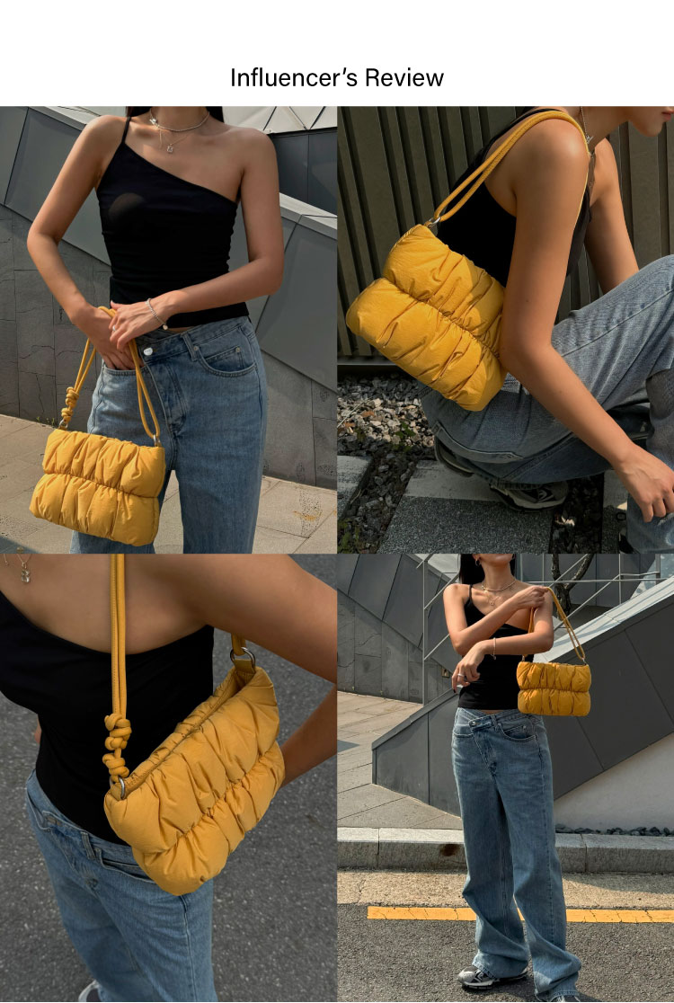 - 자석 여닫음 디테일로 가볍게 들수 있으며, 끈 매듭으로 길이 조절 또한 가능.